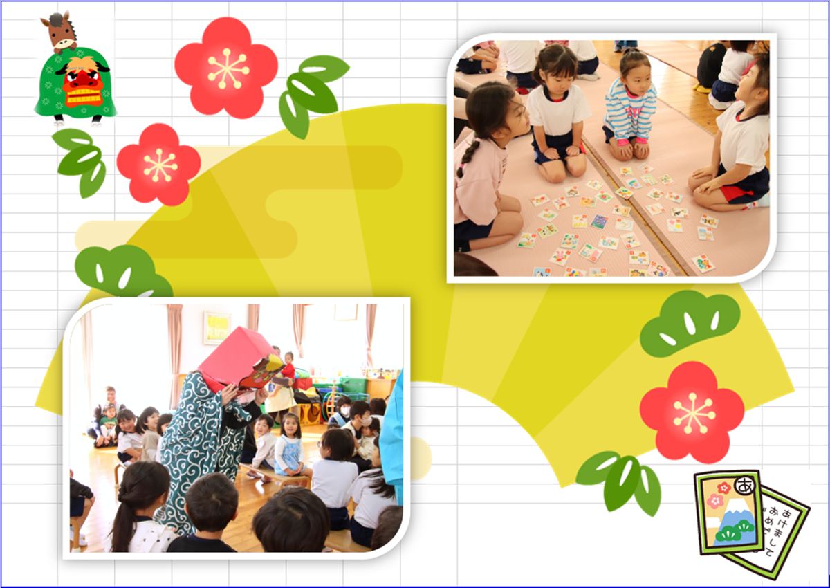 「かるた大会」2歳児クラスから5歳児クラスの子どもたちが参加しました。5歳児が読み手となり、とても盛り上がりました。